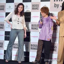 JunJunが「普段から“ボス感”がある」という渚について「アイラインを跳ね上げて、アイシャドウをアイホールに3色入れている。メイクでボス感をプラスすると(イメージの)まんまなので、トレンドを入れておしゃれな都会的なメイクにした」とポイントを紹介。渚は「本当に普段、イベントでメイクさんにメイクをしてもらうことがないんです。それがボスメイクで、こんなに変わるんや、ってびっくりしています。クジラが陸を二足歩行で歩いたくらいの衝撃」と独特な表現で笑わせた。