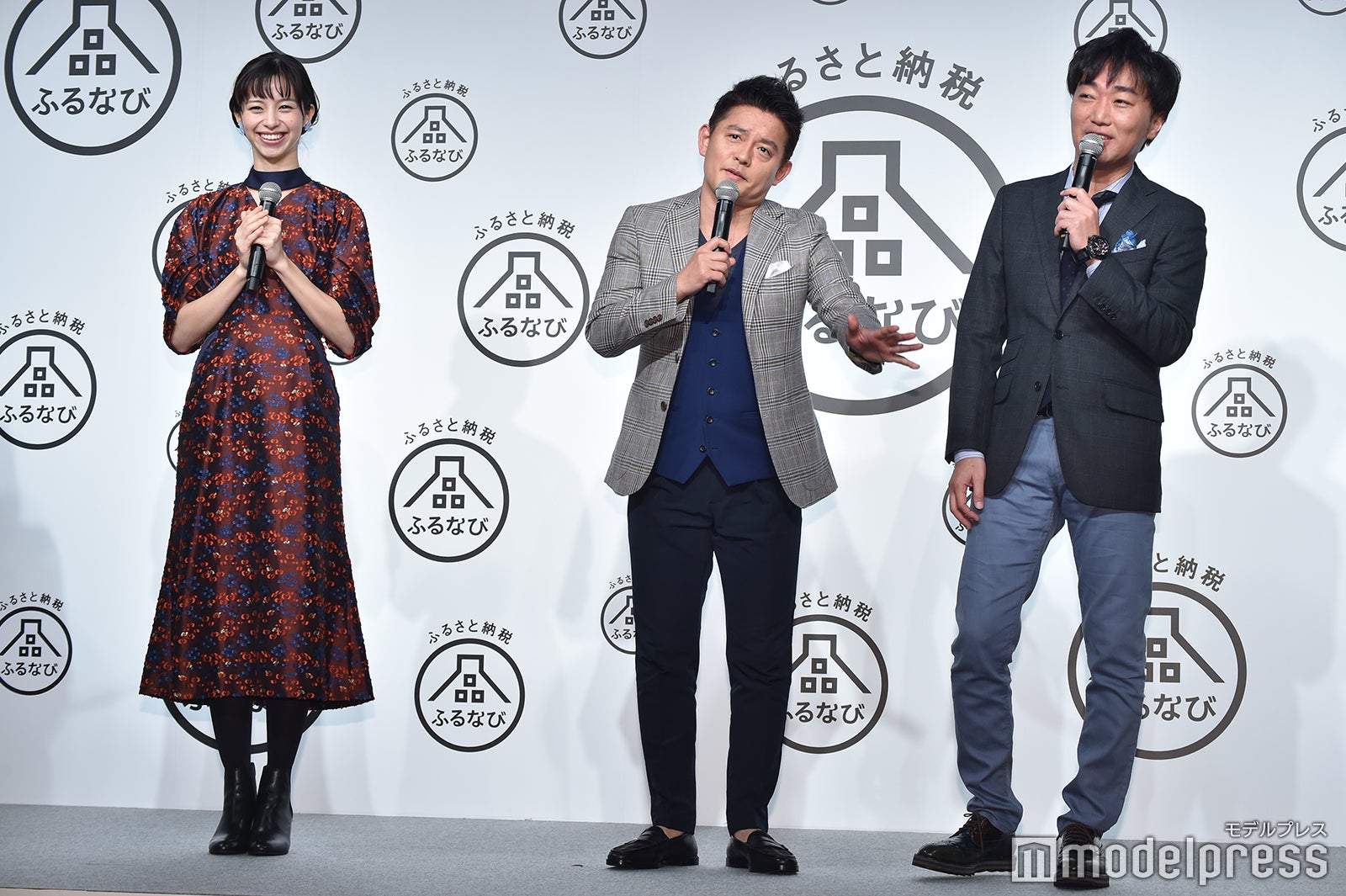 モデルで女優の中条あやみが15日、都内で行われたふるさと納税の新CM発表会に、お笑いコンビ・スピードワゴンの井戸田潤、小沢一敬とともに出席した。