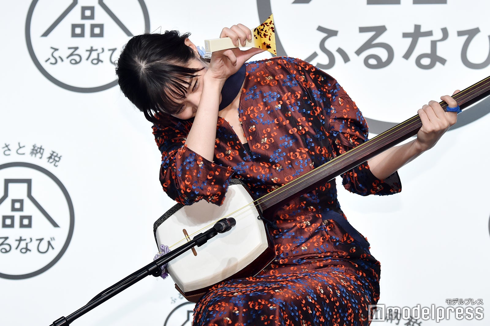 また、同CMソングを中条が三味線で披露する一幕もあり、「高校の授業でやっていて、久々なのでハードルを下げてお願いします」と緊張した面持ちで語った中条は、何度か失敗しながらも無事に弾き終えると「この時間は必要だったのかなと思うんですけど(笑)、楽しかったです。撮影でも何回も聞いていたので、緊張したんですけどご静聴ありがとうございました」と安堵の表情を浮かべた。イベント後の代表質問で、ふるさとの味で大好きなものを聞かれると、大阪府出身の中条は「やっぱり粉物はすごく好きで、1番はたこ焼きが好きです」と声を弾ませ、自身のふるさと以外でふるさと納税をしてみたい場所については「お仕事で島根の出雲に行かせていただいたのですが、出雲そばがすごく美味しかったので」と目を輝かせた。