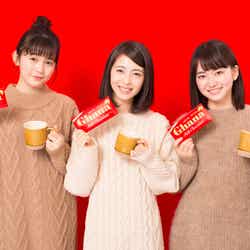 女優の浜辺美波・山田杏奈・久間田琳加が出演するチョコレート菓子の新CMが、26日から全国でオンエアされる。