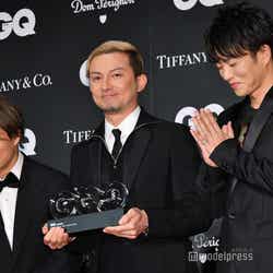13回目を迎えた今年は竹内、田中、DA PUMPのほか、千鳥の大悟・ノブ、メイクアップアーティストの辻一弘氏、歌手・俳優・演出家の美輪明宏、俳優のリリー・フランキー、映画監督の是枝裕和氏、プロ車いすテニスプレーヤーの国枝慎吾氏が選ばれた(※是枝氏、国枝氏は授賞式を欠席)。また、3度目となる「GQ WOMEN OF THE YEAR」は、プロフィギュアスケーターの浅田真央が受賞した。(modelpress編集部)