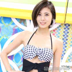 TBS系バラエティ番組「水曜日のダウンタウン」にてお笑いトリオ・安田大サーカスのクロちゃんと恋愛企画に挑み注目を集めている蘭は、レトロなアンティーク感が可愛いショルダーフリルビキニを着こなし。Vカット効果で谷間も美しく演出。持ち前のプロポーションを存分に披露した。沖舘唯は、ギンガムチェックの個性派デザインがオシャレなモノキニ水着に生着替え。黒のモノキニで縦ラインを強調し、細見え効果も。ビーチで目を引くオシャレ上級者な着こなしとなった。