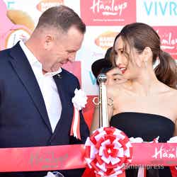 冷たい海風が吹く中、ベアトップの黒いドレス姿の紗栄子が登場すると、詰めかけたファンや観衆から声援や「可愛い」との声が飛んだ。現在、イギリス・ロンドンで生活中の紗栄子は、英国発で日本初上陸となった同店について聞かれると「イギリスでおもちゃ屋さんといえばハムリーズで、息子たちがイギリスの学校に通っているんですけど、週末、学校から帰って来てどこに行きたいか聞くと必ずと言っていいほどハムリーズの名前が出てくるくらいメジャーで、みんな大好きなおもちゃ屋さんなんです」といい、「つい先週末に(息子たちと)一緒に行ってきました」と明かした。