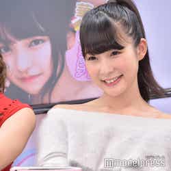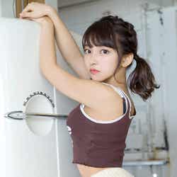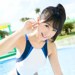 一方、川崎は「3人でやるってなったとき、1番心配したのは露出具合。この3人で並ぶとどうなるんだろう」と1番の先輩らしく気を遣っていつつ、「どうしてもハイレグを外したくないって意見を出して叶ったカットです」とそれぞれのソロショットが並んでいる中の、自身のハイレグカットをチョイス。「誌面の中でも1番角度があるやつです」と“ハイレグクイーン”らしいショットを笑顔でアピールした。