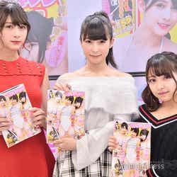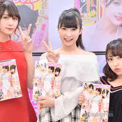 「週刊ヤングジャンプ」52号(11月29日発売)の表紙・巻頭・センターグラビアを飾った川崎あや、アンジェラ芽衣、十味が、12月2日に都内でイベントを開催。報道陣の取材に応じた。