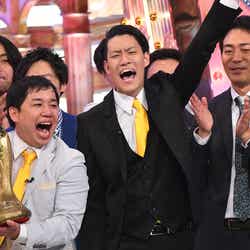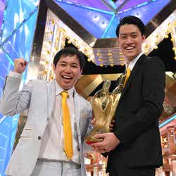 14代目にして平成最後、さらには史上最年少で初の平成生まれのチャンピオンとなった霜降り明星。優勝した感想を問われたせいやは「正直、相方は楽屋で泣いていたんですけど、莫大な結果すぎて、受け入れてないです。僕の体が、今。だから、まったく泣いてないですよ。何が起こったか分からなくて。今も、『これ全部ドッキリでした』って言われても、ほんま受け入れられるくらいの。夢見てるみたいです」と興奮気味にコメント。一方の粗品は「僕も同じく、あんまり実感がないかな。でも、やっぱり嬉しいですね。結果発表から今まで、たまにせいやと二人きりになるタイミングがあったんですけど、その時が一番うれしかったですね。ちょっとこう、相方ともっと噛み締めたいところですね」と感慨深そうに語った。