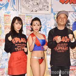 人気漫画『キン肉マン』連載40周年企画でオープンした同酒場のPR大使を務める天木は、セクシーキン肉マンコスプレ姿で登場すると「『キン肉マン酒場』PR大使、二次元ボディのIカップ、グラビア胸度95万パワーの天木じゅんです!」とあいさつし、隣に立つキン肉マンを目にすると「私のほうはリアルな肉が付いていますので(笑)。オッパイが飛んでいったら誰でも倒せちゃうかなって気持ちで挑んでいます」とニッコリ。同コスプレのためにどれくらい時間がかかったか尋ねられると「準備は衣装もしっかり作ってきていただいたので、そこまでかからなかったんですけど、1時間半くらいですね」と明かした。天木じゅん、激辛料理に挑戦