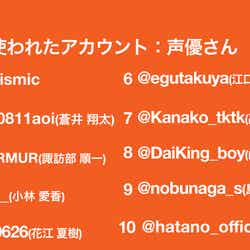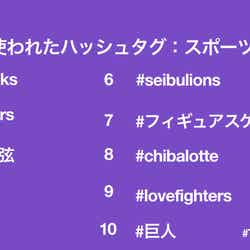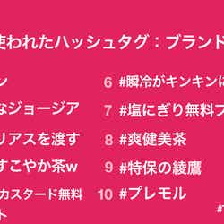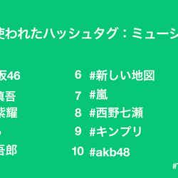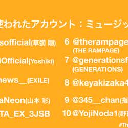 ほか、もっとも使われたテレビ部門・アカウントの2位は「金曜ロードSHOW」、3位は「めざましテレビ」、4位は「ミュージックステーション」。そして5位には「GENERATIONS高校TV」がランクイン。もっとも使われたテレビ部門・ハッシュタグでは、1位が「#nitiasa」、3位が「ミュージックステーション」を示す「#mステ」、4位が稲垣吾郎、草なぎ剛、香取慎吾の“新しい地図”の「#ななにー」、5位は今年女優の永野芽郁がヒロインを務めたNHK連続テレビ小説(NHK総合)の「#半分青い」など、話題となった番組が並んでいる。(modelpress編集部)