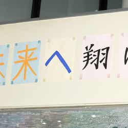 場所は、特設スケートリンク奥のマイナビBLITZ赤坂の施設内のTBSギャラリー。『中学聖日記』の教室をイメージした展示コーナーには、制作発表で使用した黒板アートや、劇中で使用した“黒岩くん“こと晶(岡田健史)の青いリュックなどが。