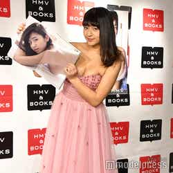 写真集の中身に関しては「10代の私を詰めた写真集になっています。かわいいカットからセクシーなカットまで。色々と想いの詰まった1冊になっています」と紹介。お気に入りは、美バスト顕わに寝そべる1枚で、「自分じゃないみたいにすごくきれい」と笑顔で語った。