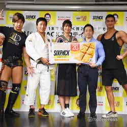 タレントの稲村亜美が17日、都内で行われたイベントに柔道家の藤原崇太郎、プロレスラーの竹下幸之介、お笑い芸人のジャスティス岩倉、日本体育大学准教授の岡田隆氏とともに出席した。
