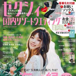 最旬タキシード特集にDA PUMPがシックな姿で登場。挙式用のフォーマルスタイルと、それを着回し、着崩したパーティ用のカジュアルスタイルの2種類を披露した。ISSAは薄く格子柄の入った白ジャケットからラフなカモフラ柄ジャケットに着替え、TOMOはジャケットは変えずに下をハーフパンツに替えるなど、メンバーそれぞれが個性的なアレンジにトライ。少しの工夫でガラッと印象が変わることにメンバー同士驚いていた。難しそうなスタイルまでさらっと着こなしてしまうDA PUMPのメンバー。今号にはいつもと雰囲気の違う、クールに決まったDA PUMPが盛りだくさんとなっている。