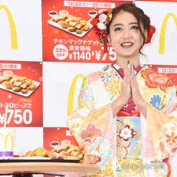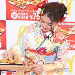 今年20歳となり、来月には地元での成人式を控えている。この日は一足早く振り袖姿で登場し「成人式もうすぐなので着る機会があって楽しい。今日はクリスマスっぽい赤と緑が入った柄を選んだ」と声を弾ませた。どんな大人になりたいか聞かれると「朝起きるのが苦手なので、ちゃんと朝起きられる大人になりたい」、仕事面では「もともと欲がないので現状維持」と回答。池田は以前から25歳までには結婚したいと公言しており、この日も「子どもも大好きなので早くほしい。地元の友達は同い年でも、もう子どもがいる。早く追いつきたい」と改めて目標を定めていた。(modelpress編集部)