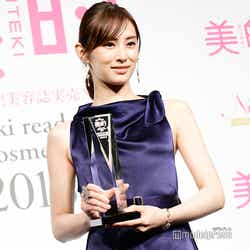 「美的ベストビューティウーマン」として、今年の「なりたい顔」&「なりたい髪」の1位をW受賞した北川は「恥ずかしいのと、ちょっと申し訳ないのと、ありがたいなあっていう感じ」と照れ笑いを見せ「トロフィーもすごく重みがあって、この賞の重みを感じました」と白い歯を見せた。