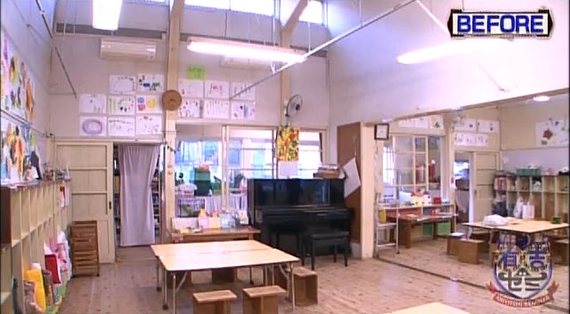 今回リフォームするのは、2人の地元・八王子の幼児園。築60年を超える園舎はいたるところにガタが来ており、子ども達の笑顔の為に「八王子リホーム」の棟梁・ヒロミと平社員・滝沢の2人が7日間にわたって作業した。no