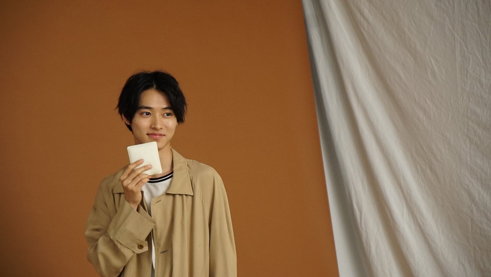 カジュアルがテーマの「チョコレート」を紹介するシーンでは、茶色のコートを羽織って振り向く芝居に挑戦。また、ビジネスがテーマの「ピーナッツ」では、これまでの満面の笑顔や優しい雰囲気から一転、ビシッとスーツを着こなし、キリッとした印象の爽やかな芝居を披露。終始自然体で、魅力的な人柄が伝わってくる山崎の一挙手一投足に、スタッフの誰もが元気をもらっていた。(modelpress編集部)