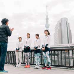 女のコのランニングカルチャーをリードするランニングチームとして、2012年4月よりスタートした「東京ガールズコレクション」の公式ランニングプロジェクト「TOKYO GIRLS RUN」(以下:TGR)。フルマラソン初挑戦に向けて12月、隅田川テラスにて公式練習会が行われ、体調不良で欠席となった村田倫子を除く、アンジェラ芽衣、佐野千晃、坪井ミサト、七海の4人が参加した。