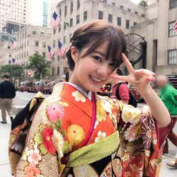 今回公開されたのは、アメリカ・ニューヨークの五番街で振袖を着たカット。華やかな振袖姿の生田の背景には、五番街の街並みや道行く人々、はためく星条旗などが写っており、そのギャップが印象的な1枚となっている。