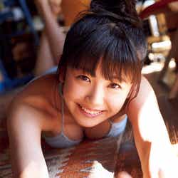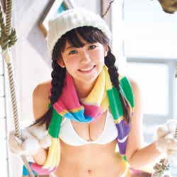 巻頭グラビアでは、青い海と白い砂浜が広がるビーチで美ボディあらわな水着姿を披露。修学旅行気分の制服姿など爽やかオーラ全開ショットも掲載されている。