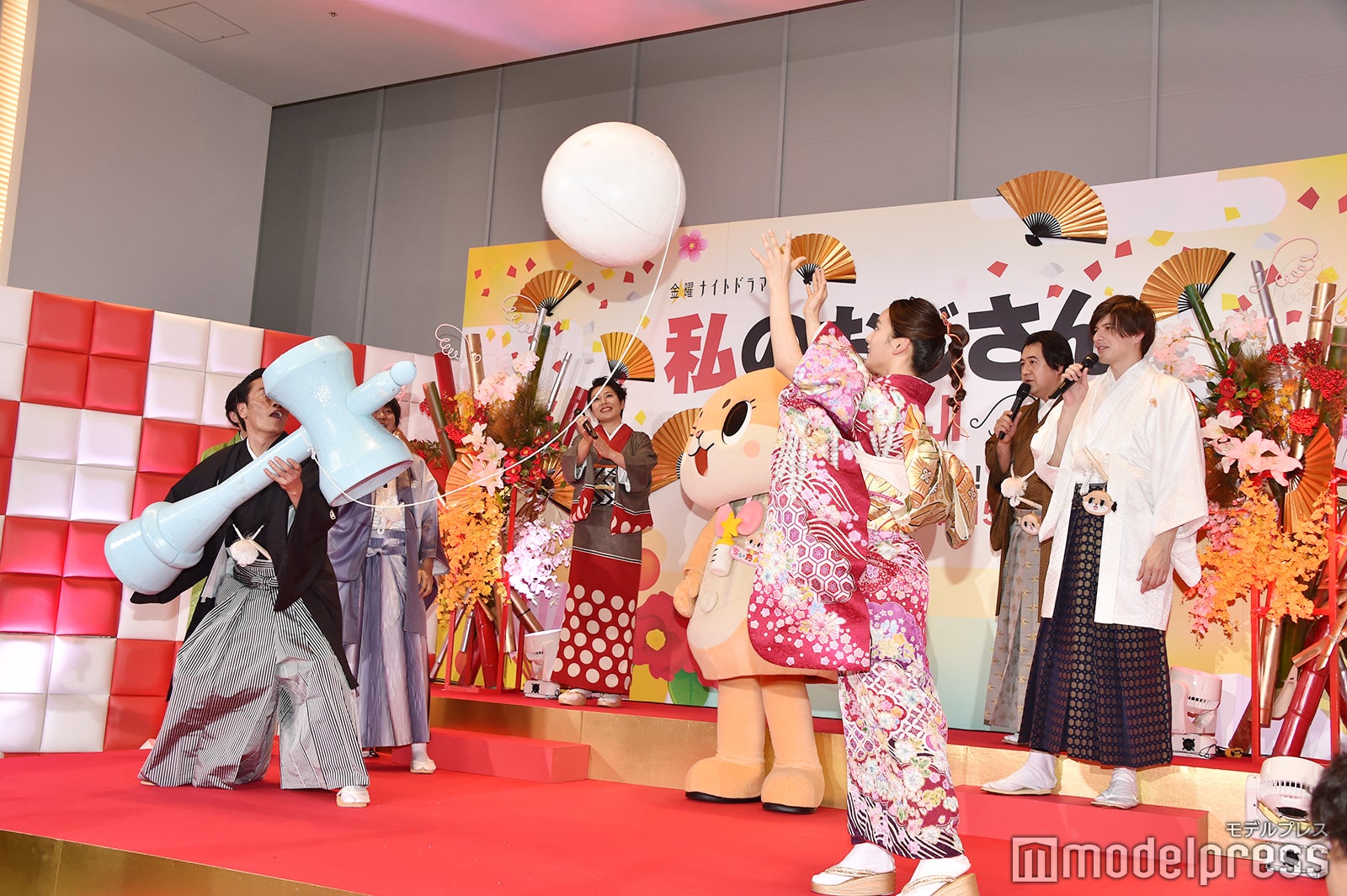 イベントでは、今年の抱負を書き初めで披露する企画も行われ、“一長一短”と書いた岡田は「まず『ドラマのことを書けや』って思って後悔して反省したんですけど、そういうところは短所だなと思って、そこを分析できるのは長所かなって思ったので、長所も短所も愛していこうかなって意味で一長一短にしました」と語り、“初心勿忘”と書いた城田は「私もディレクターとして上から目線でものを言ったりしているんですが、常に初心は忘れてはいけないなということと、個人的には今年芸能生活20周年なので、初心を忘れてはいけないなというのをかけました」と気を引き締めた。さらに、イベントの最後には秋葉原出身のコツメカワウソの妖精・ちぃたんも乱入し、出演者と巨大けん玉対決を行うなどして会場を盛り上げた。(modelpress編集部)