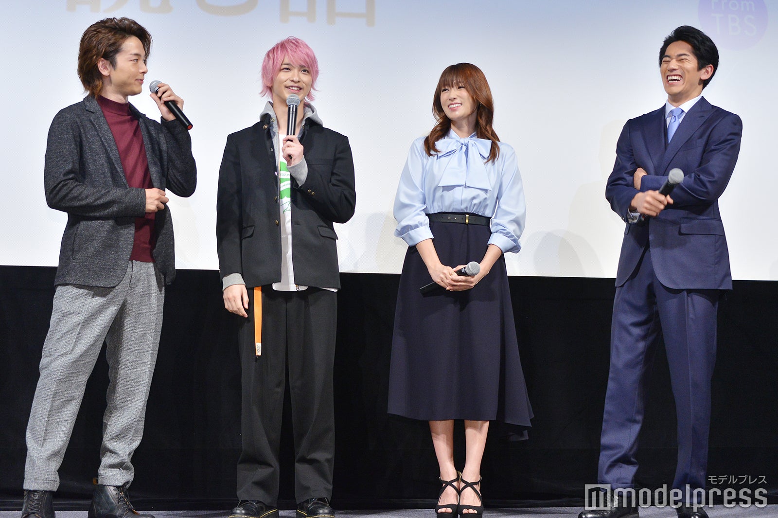 髪をピンクに染めた不良な高校生・由利匡平役をオーディションで勝ち取ったという横浜は、1話を試写した観客を前に「どうでしたか?これからどんどん盛り上がっていくので、友達、家族…あの~おもしろかったよと言っていただけたら。友達、恋人、家族…おもしろかったよと誘っていただいて、あ、これ映画じゃねぇ…」とパニック気味に挨拶。多忙な横浜に、深田が「映画の舞台挨拶ばっかりやってるからね」と気遣うも、匡平の担任で元ヤンの高校教師・山下一真を演じる中村は「すみません、うちのクラスの生徒が。後で生徒指導室でこんこんと説教しますので」と厳しくコメント。