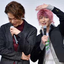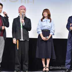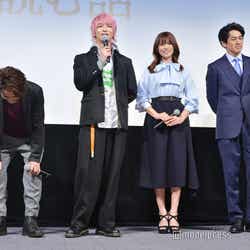 髪をピンクに染めた東大志望の不良高校生・由利匡平役の横浜が「高校生なのに、考えられないような大胆なアプローチをしていく。少女漫画原作の作品には何度か出させていただいているんですが、ストレートに世の女性をドキドキさせるような役回りは今までなくて。なので監督やスタッフの皆さんから『ドキドキさせろ』『今のじゃドキドキしない』って言われたりして、そこはとても苦労してる」と明かすと、すかさず「ドキドキしたよ、俺」と永山。深田に「どのシーンですか?」と聞かれると、「え?……ぺろってしたシーン」と照れくさそうに“舌ぺろ”のシーンだと回答。