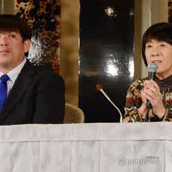 会見の最後には母の幸代さんが花束を贈呈。そろって笑顔でフォトセッションに応じた。