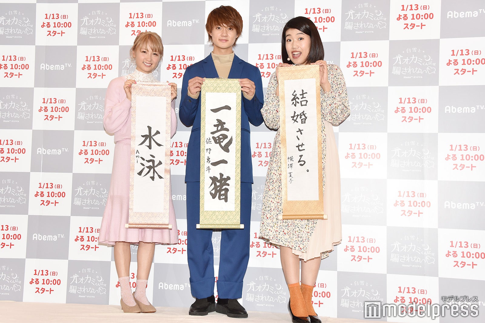 Dream Amiが10日、東京大神宮で行われたAbemaTVのオリジナル恋愛リアリティーショー「白雪とオオカミくんには騙されない◆」(1月13日よる10:00よりレギュラー放送、◆はハートマーク)の初回放送直前イベントに、番組MCを務める横澤夏子、応援ゲストの佐野勇斗(MiLK)とともに出席した。