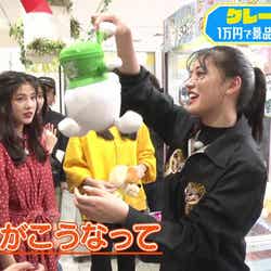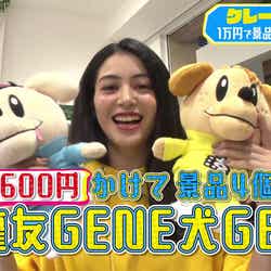 その後、5000円を使ったタイミングで2個目、6000円を使ったタイミングで3個目のぬいぐるみを獲得。予算残高900円となったところで、一番取りやすい位置にある「龍友ジェネ犬」に狙いをしぼることに。須田アンナ、SAYAKA、武部、夏恋が1回ずつ挑んだあと、「押し出し得意な人!」という須田の呼びかけに挙手して、先ほど活躍した楓が登場。1回目の挑戦で、見事2個目のぬいぐるみを獲得した。
