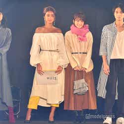 現在は卒業しているが、乃木坂46・1期生としてデビューから人気メンバーとして活躍していた2人。ランウェイで再共演を果たした。深川は、シックなワンピースを着こなし、クールな表情を見せたと思うと、キュートな笑顔も。ギャップで会場を魅了した。