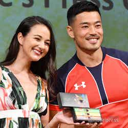 “美人すぎるアスリートの妻”山田ローラ、夫・ラグビー山田章仁選手と登場 初のお姫様抱っこを体験