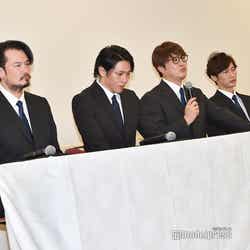 ムード歌謡コーラスグループ「純烈」の酒井一圭(43)、後上翔太(32)、白川裕二郎(42)、小田井涼平(47)の4人が15日、都内で会見を行い、過去の複数の交際女性への暴力や金銭問題が報じられ、グループを脱退し芸能界を引退した元メンバーの友井雄亮(38)について謝罪した。