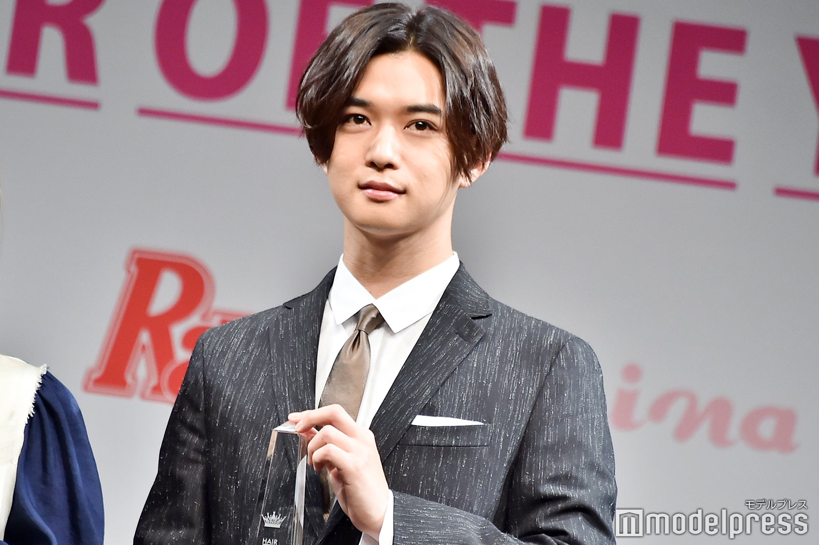 千葉は彼氏やパートナーにしてもらいたいヘアスタイルということで男性タレント部門に選出。花束とトロフィーを受けとり、「トロフィーがずっしりしていまして大変嬉しかったです」と喜びを口にした。ヘアのこだわりを聞かれると、「特にないんですけど、中を刈り上げることが多いのかなと思います。ついつい刈っちゃうんですよね」とコメント。