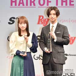 22日、都内にて行われたイベント「HAIR OF THE YEAR 3」にて、今最も素敵なヘアスタイルの著名人に贈る「ヘアオブザイヤー2019<タレント部門>」の授賞式が開催され、俳優の千葉雄大と川栄李奈が登壇した。