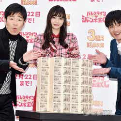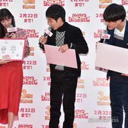 モデルで女優の新川優愛が30日、都内で行われたイベントに、お笑いコンビ・ジャルジャルの後藤淳平、福徳秀介とともに出席した。