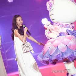 トークでは、板野の友だちだというハローキティも駆けつけ、仲良く手を繋いでいた。