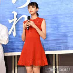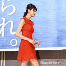 10頭身の抜群スタイルを武器に活躍するモデルでタレントのアンジェラ芽衣が6日、都内にて開催されたイベントに登壇。膝上丈のミニワンピ姿で、美脚と美ボディを披露した。