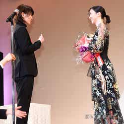 NHK連続テレビ小説「半分、青い。」のヒロインを務め高い評価を受けた永野。この日は同作で共演した志尊淳、中村倫也も新人賞を受賞し授賞式に出席していることから「久々に会ったんですけど、こういうときに限って何で隣にいてくれないのかなって不安な気持ちです(笑)」と茶目っ気たっぷりに一言。さらにスピーチでは、作品に取り組む際、「自分に自信がなくなる瞬間がある」といい、そのときに助けられたのは「温かい作品とスタッフさん」と感謝。「『半分、青い。』という大きな作品をやらせていただいて、ここに立たせていただいて、ご挨拶できていること、賞をもらったことを誇りに思います」と力強く語った。
