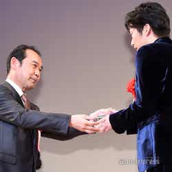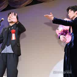 田中の新人賞受賞時のお祝いゲストにも監督が登壇。お祝いゲストは登場まで明かされないため、「『おっさんずラブ』の…」という司会の紹介に「きゃー!」と共演者の登場を期待した観客から興奮の声が上がると、田中は「来ない、来ない(笑)」と苦笑いを浮かべ手を振り、監督は申し訳なさそうにステージ上に。「まさかの2回目、僕ですみません。期待してた人もいるかなと思うんですけど」と「きゃー!」という歓声がどんどんと小さくなっていったことにツッコミを入れると、会場は笑いに包まれ、大きな拍手を監督に送った。