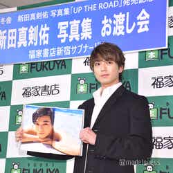 俳優の新田真剣佑が9日、都内で写真集「UP THE ROAD」(幻冬舎)刊行記念イベントを開催した。
