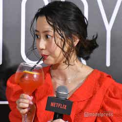 河北麻友子、真紅ドレスで美脚チラ見せ 米国でのバレンタインを回想