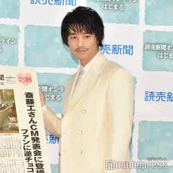 今回、一般紙の新CMに起用されたと最初に聞いた際の心境を尋ねられた斎藤は「新聞媒体は知性が求められると思っていたので、私で務まるだろうかという不安に駆られていました」と回顧し、「ですが、昭和生まれ、昭和育ちの人間としては、自分の家の中で新聞を広げる家族というのがとても印象強いので、新聞自体が昭和から平成、そして新しい時代に受けつくべき1つの情報源だと思っているので、とっても光栄でした」と笑顔を見せた。斎藤工、CM撮影の裏側明かす