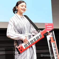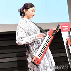 動画ソーシャルアプリ「TikTok」(ティックトック)で注目を集める女子高生ハーフタレントのエリカが、18日に都内で開催された新製品記者発表会に出席し、電子キーボードの演奏に挑戦した。