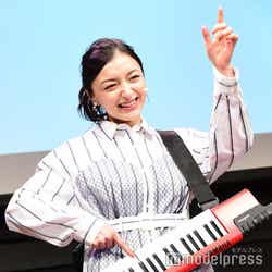 ロックスター風のポーズを見せ「こうやって弾くのが、なんかちょっと夢」とも明かしたエリカ。「楽器って、練習しなきゃいけないじゃないですか。そのときに、自分じゃできないなって思ったら、楽器を触る気にもあまりならないと思うんですけど、これだったら触ってみて楽しい」と話し「リズムに乗れて、なんかちょっと自分できてる!って思ったら練習する気にもなれるから、もっと音楽との繋がりが広がりそうというか。すごくいいなって思いました」と続けた。(modelpress編集部)