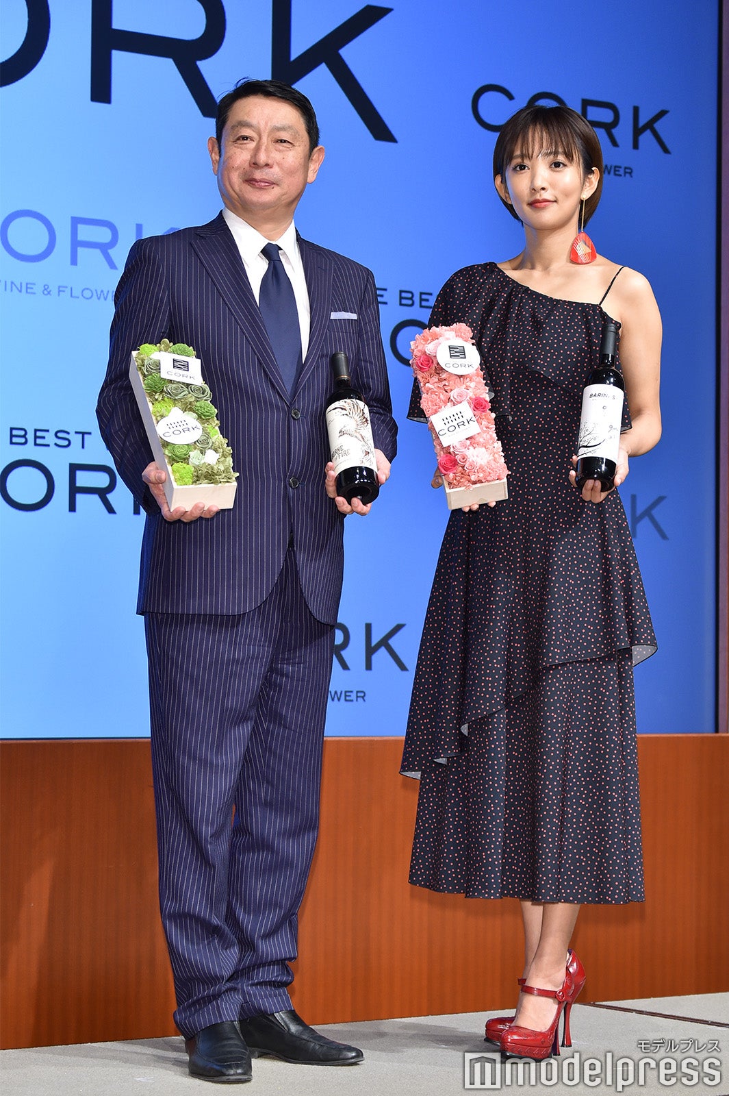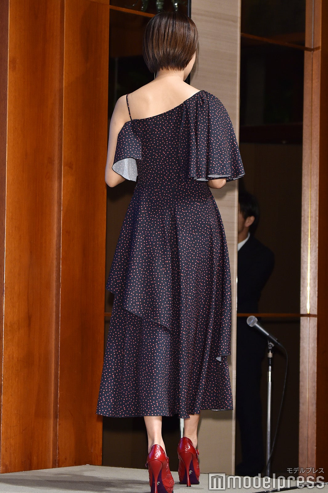 ワンオフショルダーの衣装で登場した夏菜は、ポイントを聞かれると「ワインということで赤をところどころに散りばめられているものにしました。ワインといえば大人な女性のイメージが少しあるので、少し露出もしてみました」と紹介。