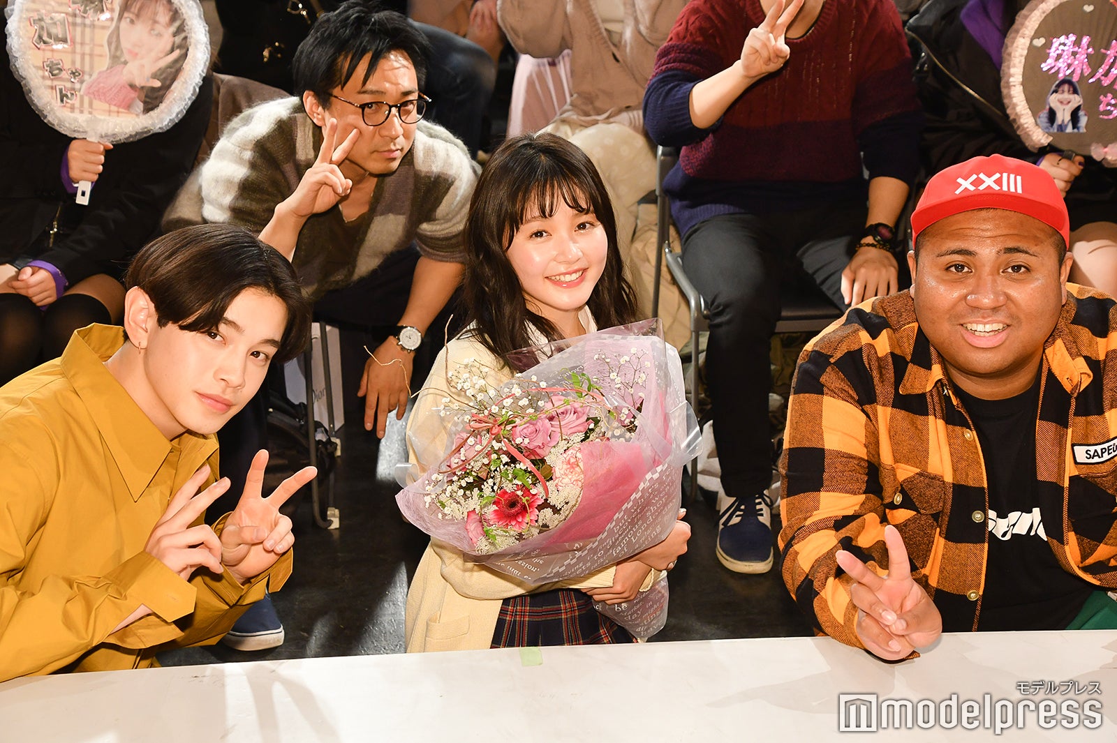 その後、ジェスチャーゲームやプレゼントコーナー、番組共演者たちなどからのお祝いメッセージのコーナーもあり、終始盛り上がっていたイベント。クライマックスには、久間田にはサプライズで会場が暗くなり、照明が点灯すると、恋愛リアリティーショー「白雪とオオカミくんには騙されない」でも話題のイケメン・鈴木康介が花束を持って登場。鈴木が掛け声を出し、会場中が一体となって「誕生日おめでとう!」と祝福すると。昨日23日が誕生日の久間田は「こういうイベントをして頂いて、やっと18歳になったのだなという実感が今、湧いてきました。こんなにたくさんの方に祝って頂けることは感謝しかありません。ありがとうございます」と笑顔を弾けさせた。