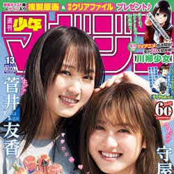 欅坂46の菅井友香と守屋茜が、27日発売「週刊少年マガジン」13号の表紙を飾る。