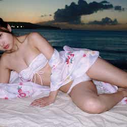 イメージカットでは水着で美ボディを披露。制服などの衣装も身に纏い、彼女の魅力の一つである“困り顔”も見せている。(modelpress編集部)