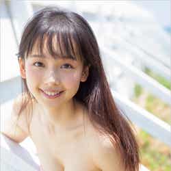 お気に入りは、淡い水色のビキニに、レースのガウンをまとったカット。「(ガウンは)ワンピース風でボタンが開いているのですが、中に着ている水着と上に羽織っているものが別々で、その相性がかわいらしいなと思っています」と笑顔。「淡い水色の衣装をなかなか着たことがないのですが、レースの感じがすごくかわいいなと思っています」とも。また、VR撮影は、初挑戦だった。360度全部を撮影するため、角度に気を付けたエピソードを述懐。「近すぎても難しいのですよ。調整するのに苦戦しながらも、ひとりで楽しんでいました」と振り返った。VR動画の内容については、「観ている人が、私と一緒にその場にいるような雰囲気です。(観ている人が)自分で向きを変えられるのですが、上は、空まで360度、きれいに映ります。臨場感があるといいますか、それがおもしろいなと思います」と紹介した。