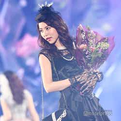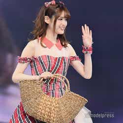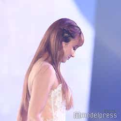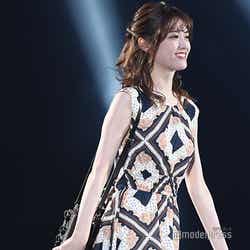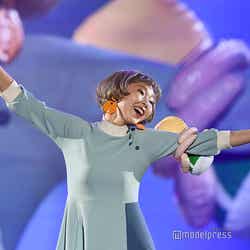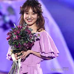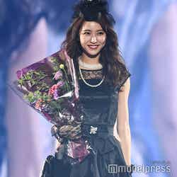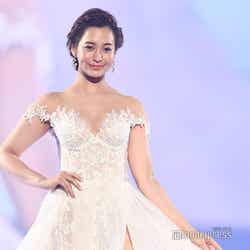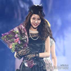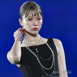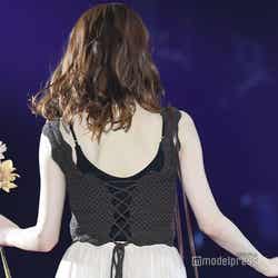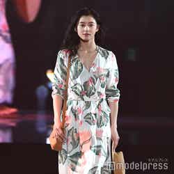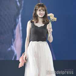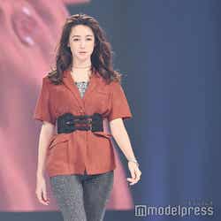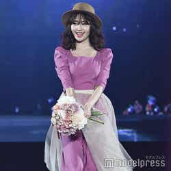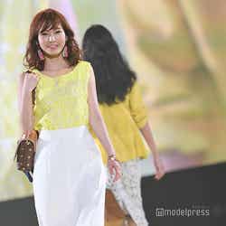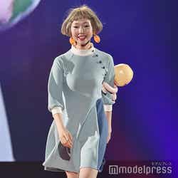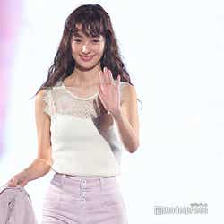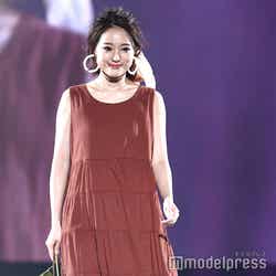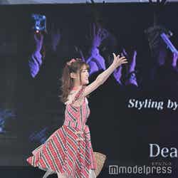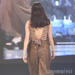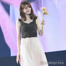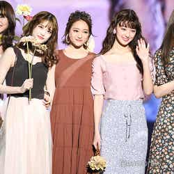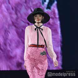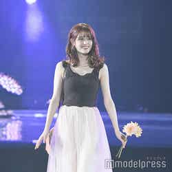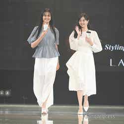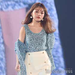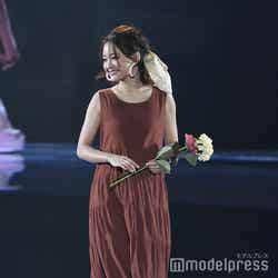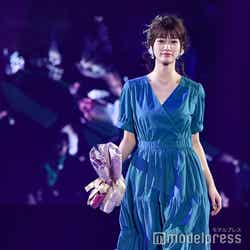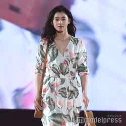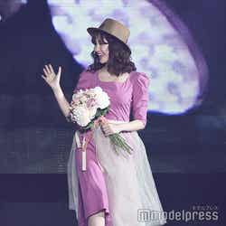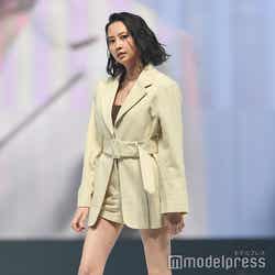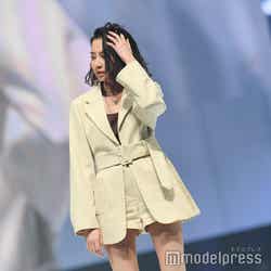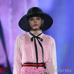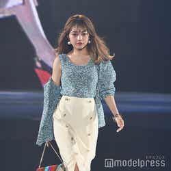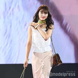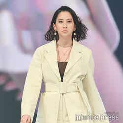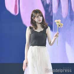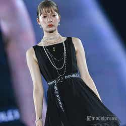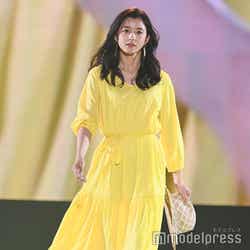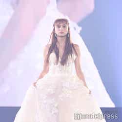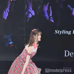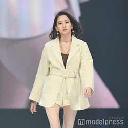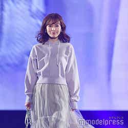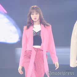 さらに、小嶋陽菜もサプライズで登場。スモーキーな大人ピンクのワンピースにチュールスカートをドッキングさせたコーデを披露。ファッションに合わせたカラーの花束を手に、スカートをひらひらと揺らしながらランウェイをウォーキングした。